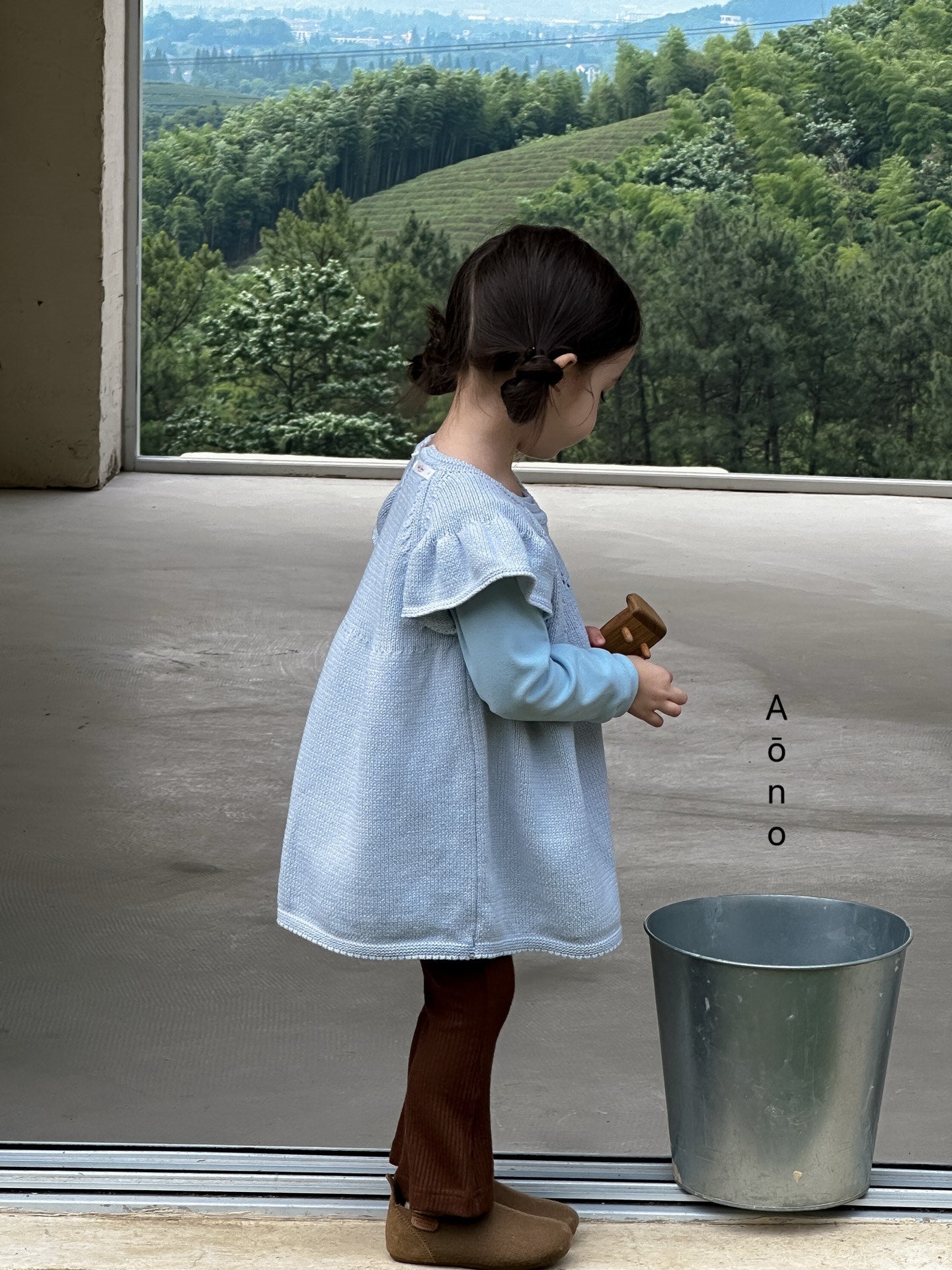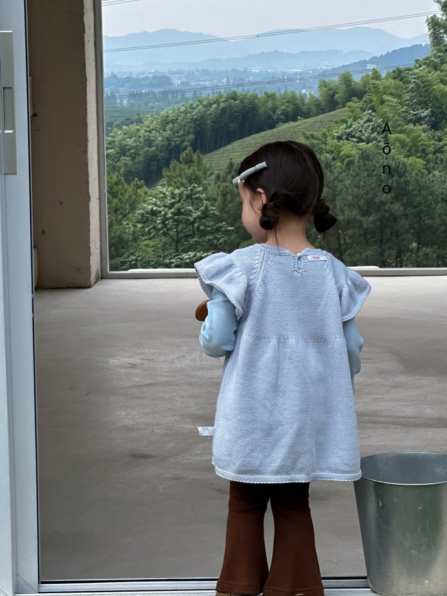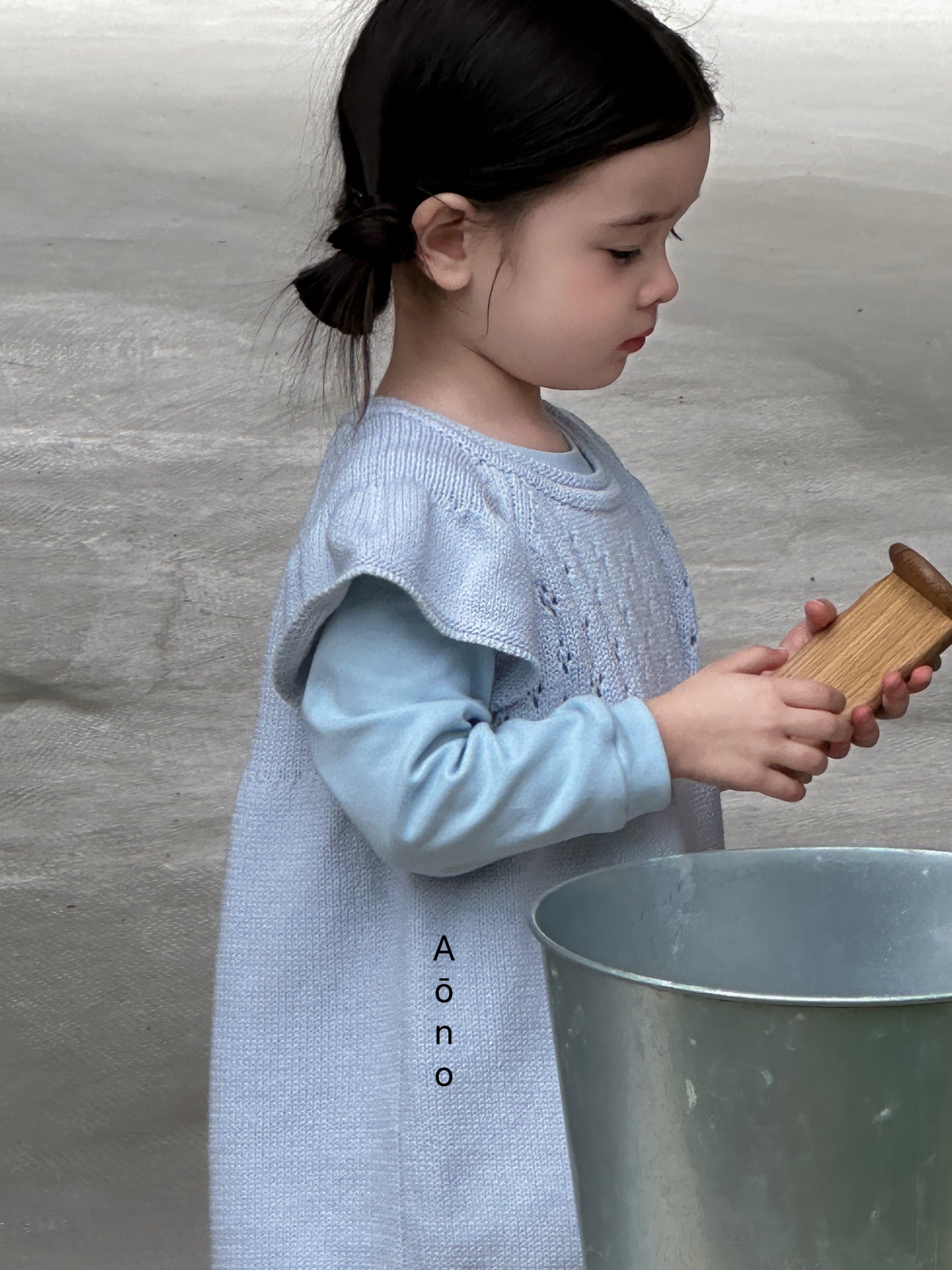 Featuring delicate eyelet knit detailing on the bodice and flutter sleeves, this dress blends sweetness with comfort. Its relaxed A-line silhouette allows for easy movement, making it perfect for both playtime and special occasions.