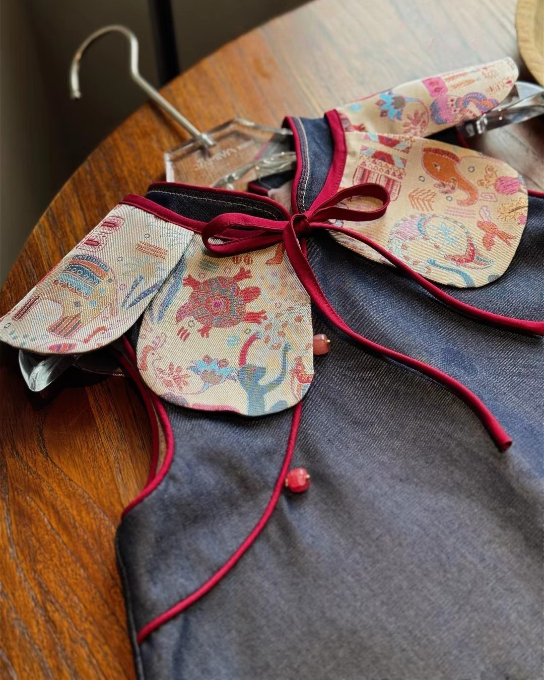 The ribbon tie at the neck adds a poetic touch reminiscent of plum blossoms in spring.