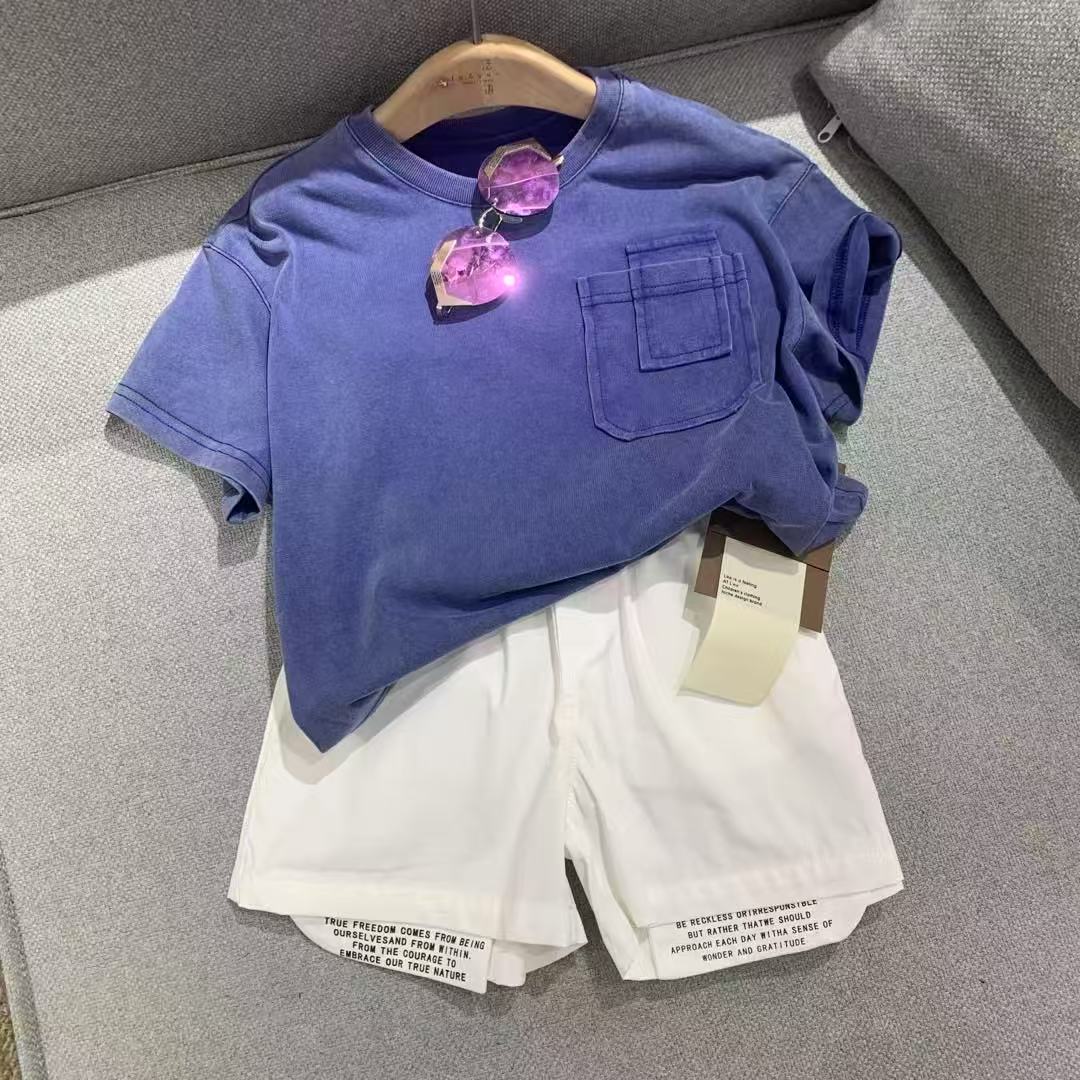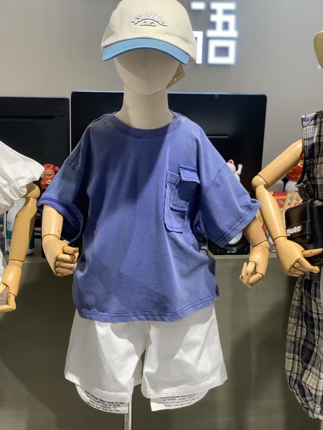 The washed indigo finish gives it a slightly vintage vibe, making it easy to pair with shorts, joggers, or jeans for any casual outing. Whether he’s headed to the park or a family day out, this T-shirt will keep him comfy and looking great.